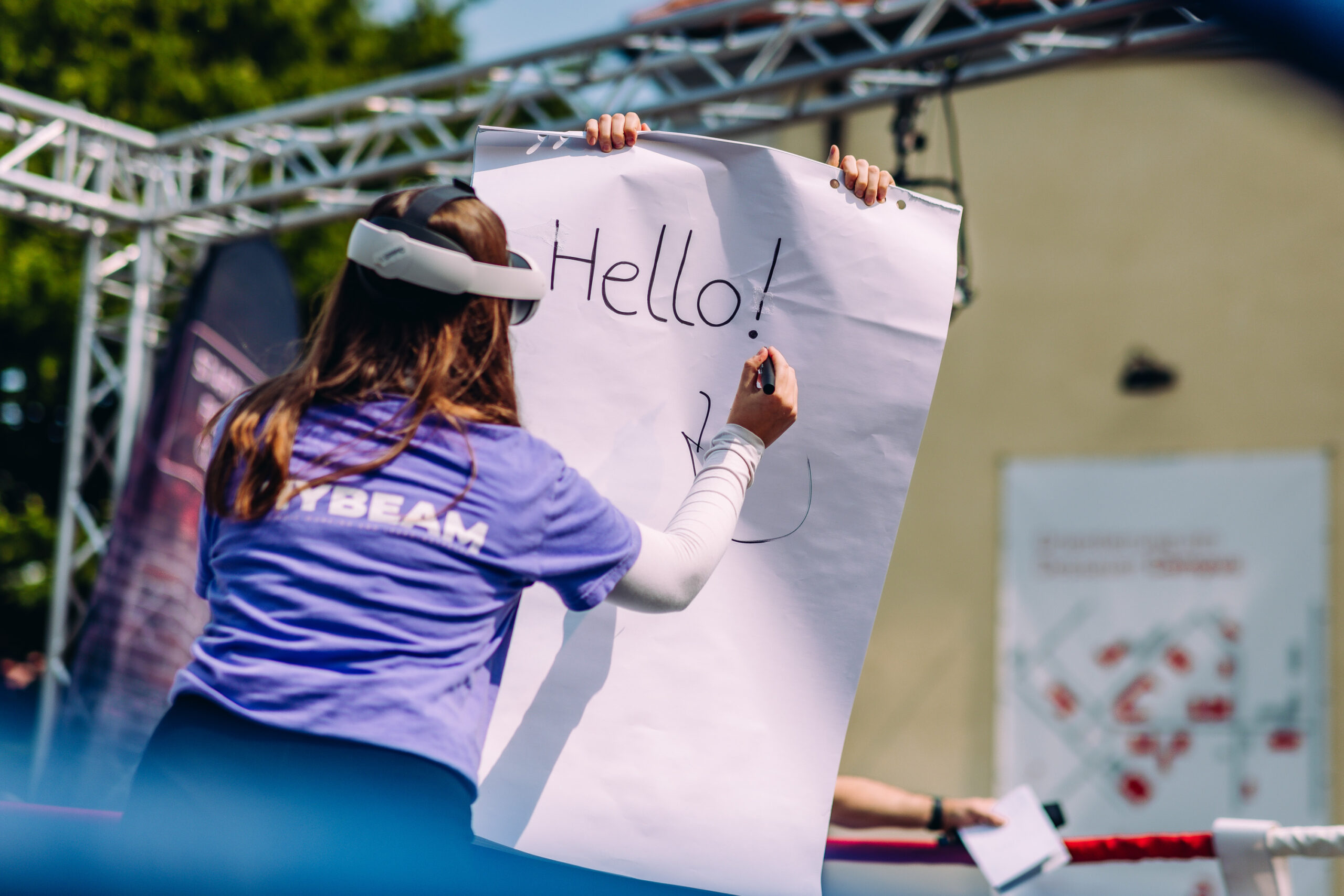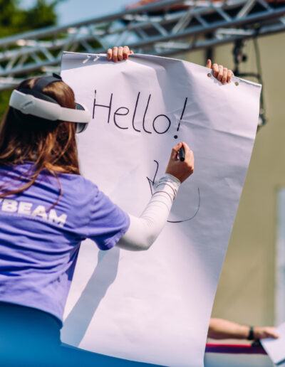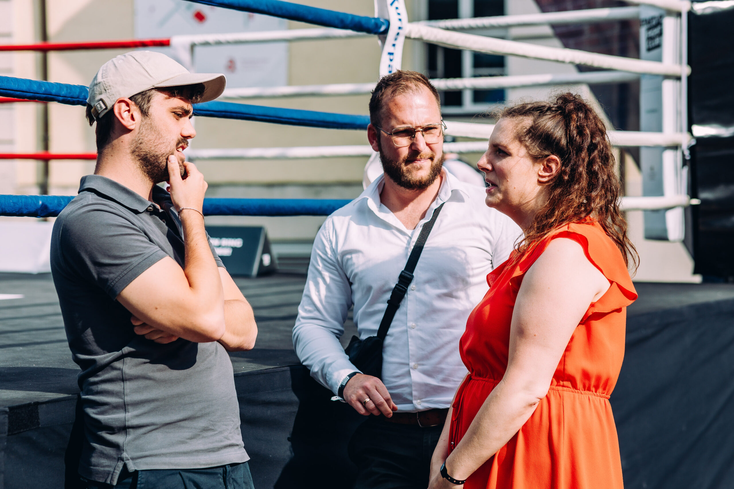 Mitten auf der Bauhausstraße, mit dem Bauhaus im Hintergrund und einer stürmisch-drohenden Wolkenkulisse umrahmt, stand der Boxring als fester Anker für alle Teilnehmer zentral: ein Leuchtturm, der die starke mentale Verbindung zwischen 1925 und 2025 widerspiegelte.