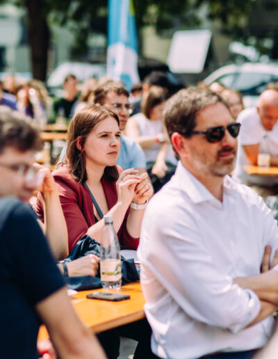 Bevor die Teams den Ring betraten, gab es natürlich noch die groß erwartete Keynote von Daniel Bohn, Gründer von und Chief Product Officer bei Conceptboard: „Beim zweiten Startup ist alles leichter – Warum Erfahrung der beste Co-Founder ist“. Er nahm die Anwesenden mit auf seine Gründerreise – vom holprigen Start 2010 über die Integration in ein anderes Unternehmen bis zur erfolgreichen Wiedergeburt während des Corona-Booms. Er teilte offen und ehrlich, was beim zweiten Anlauf besser lief, welche Fehler er nicht wiederholte und warum Erfahrung oft wertvoller ist als Kapital.